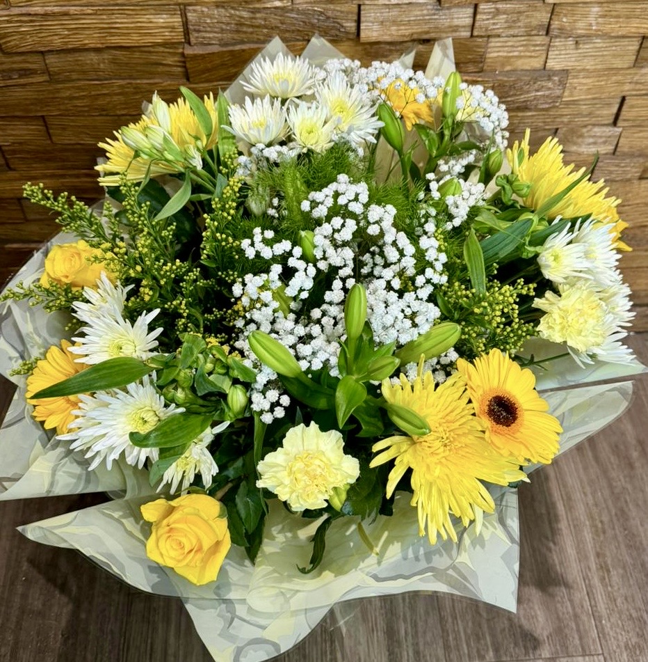 Professionally arranged by our expert florists with care and beautifully gift wrapped in coordinating cellophane. Presented in a hand tied gift box .